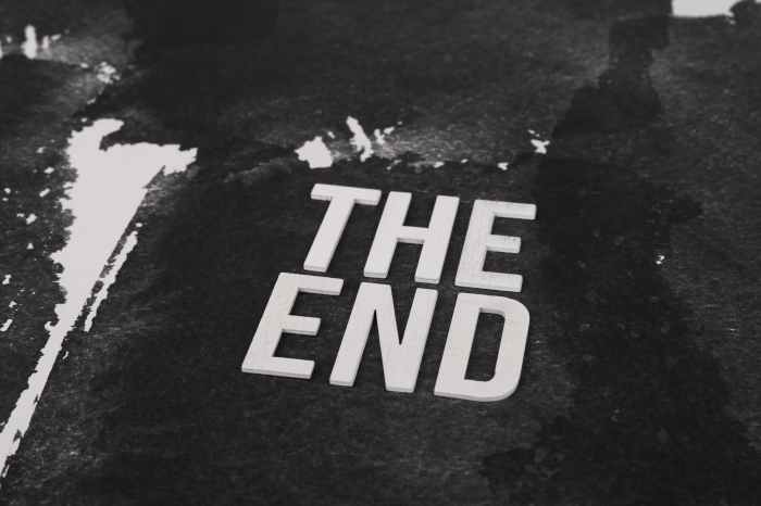 Ah, yes; the end, the finale, the curtains, fin, lights out, roll credits, home time... insert synonym for 'end' here.